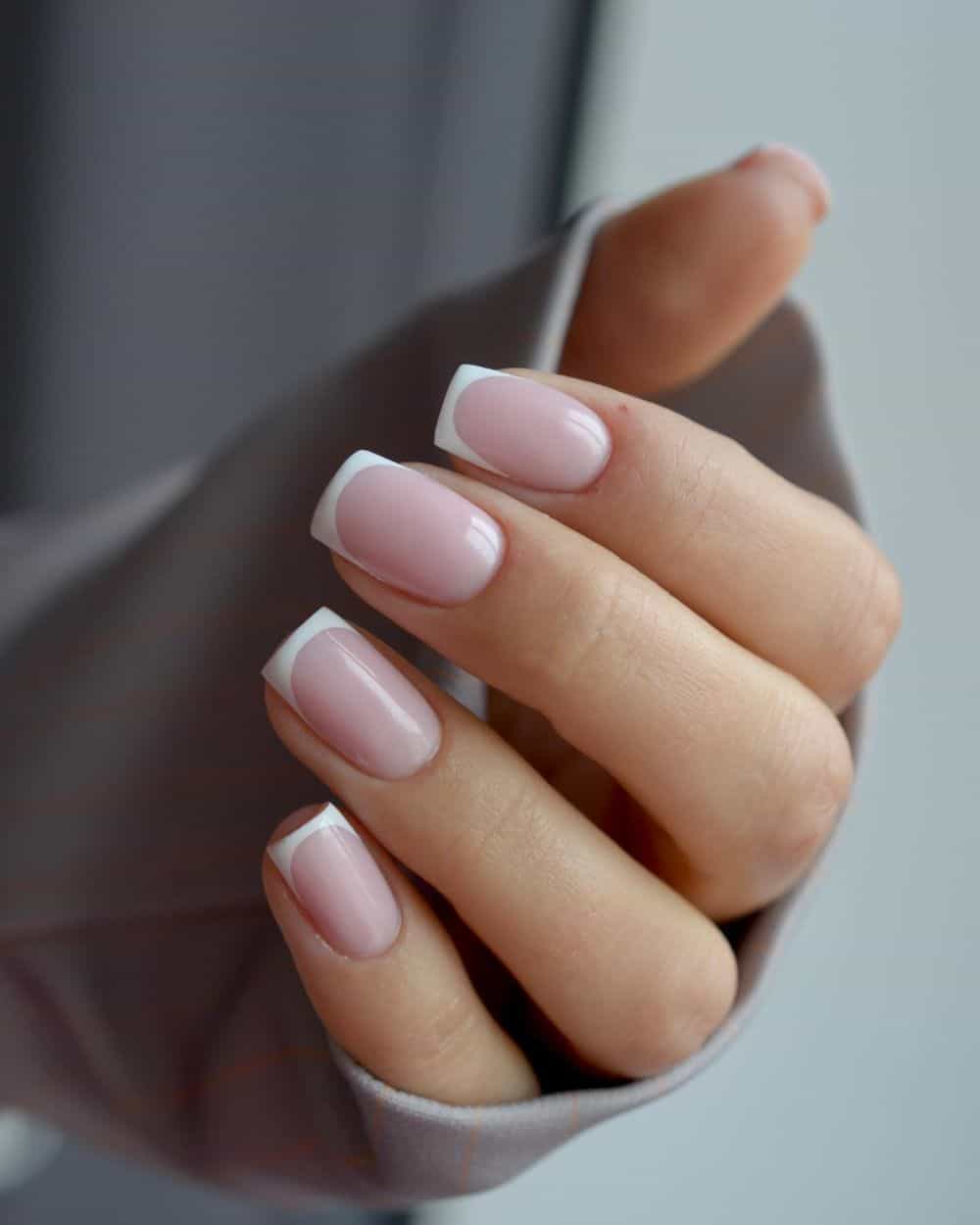 The light pink base and perfectly painted white tips are perfect for brightening up your Thanksgiving ensemble, although you can choose a nude base for a neutral finish.