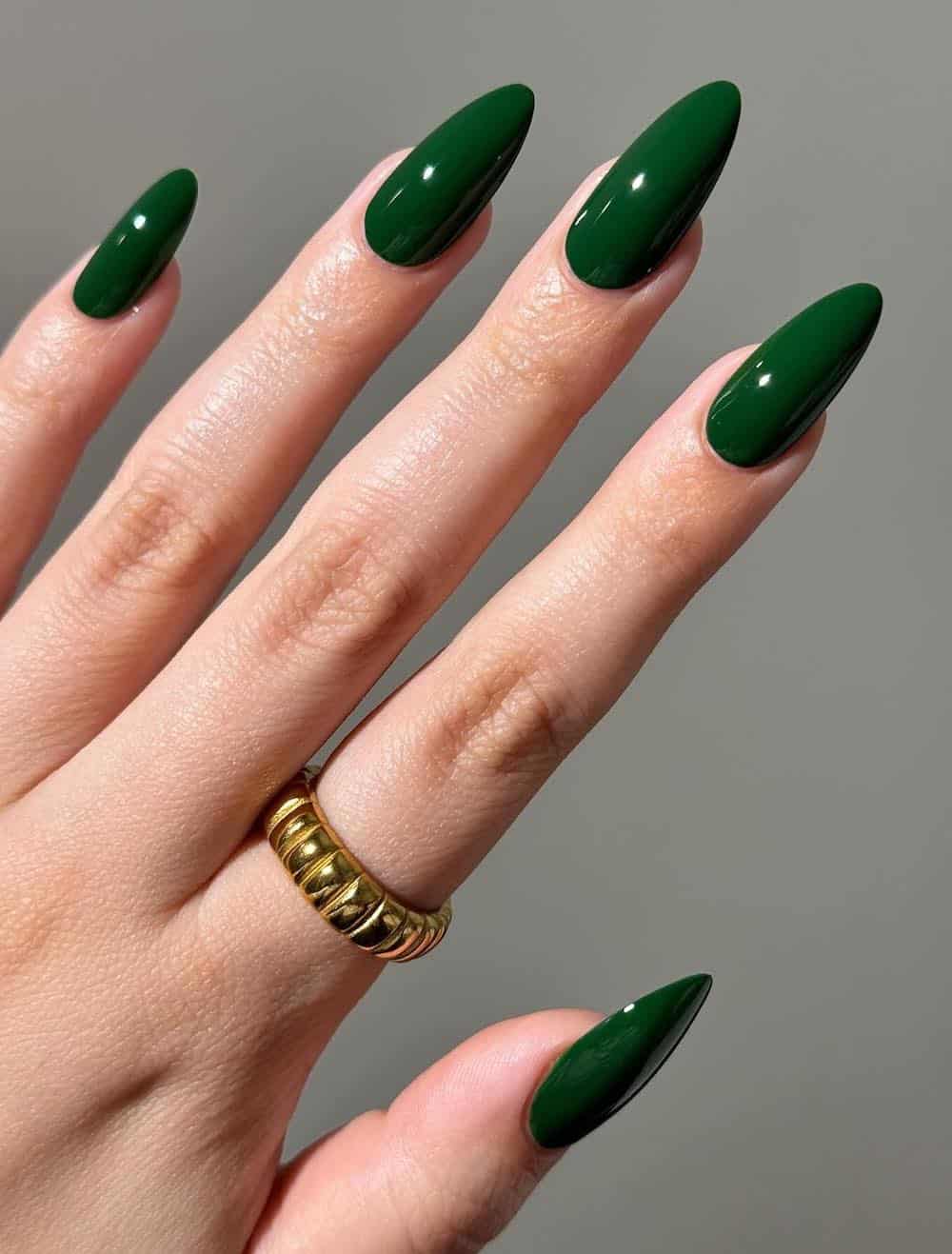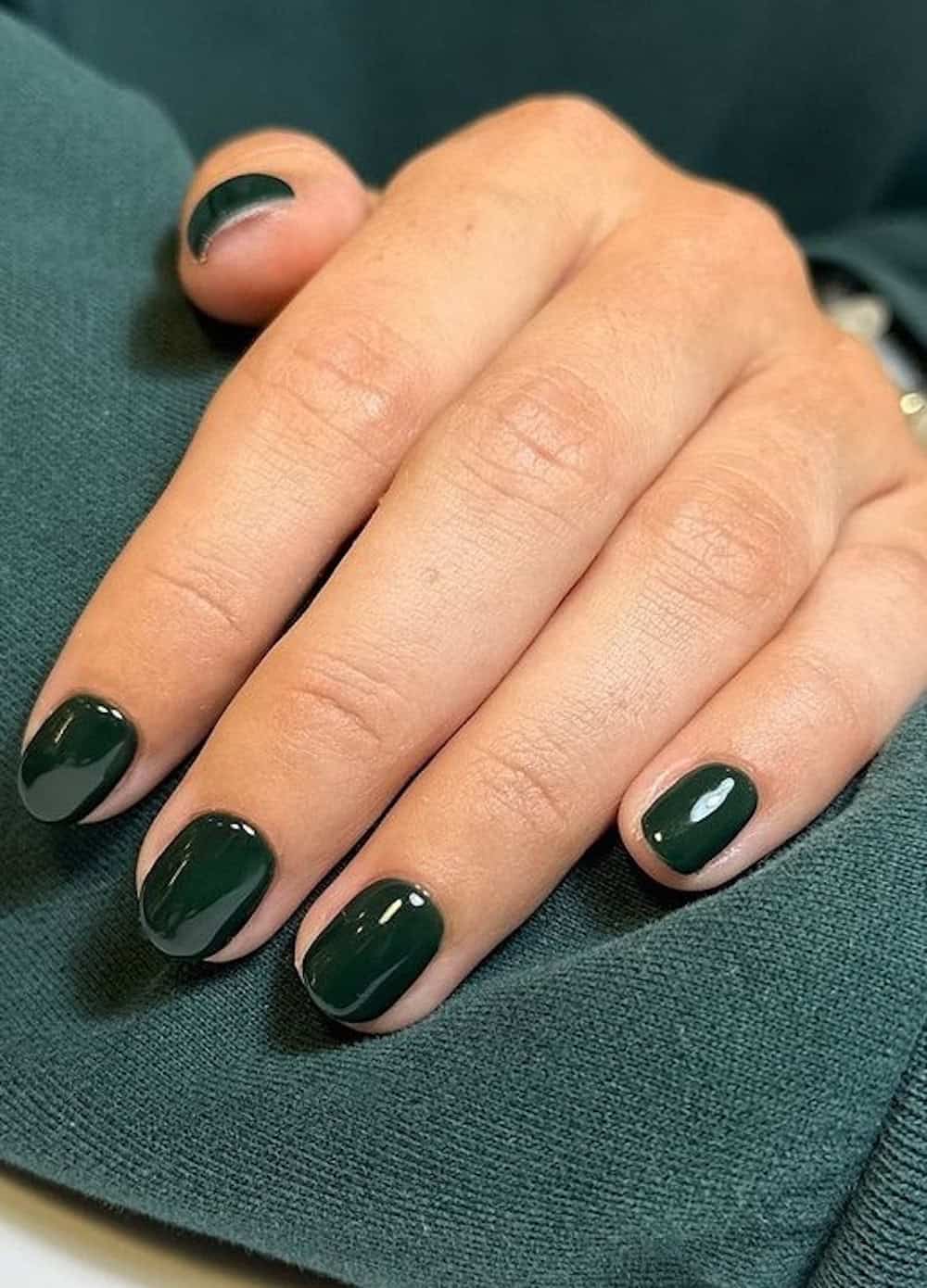 A dark green color with enough vibrancy to stand out is perfect for simple winter nails that will steal the show.