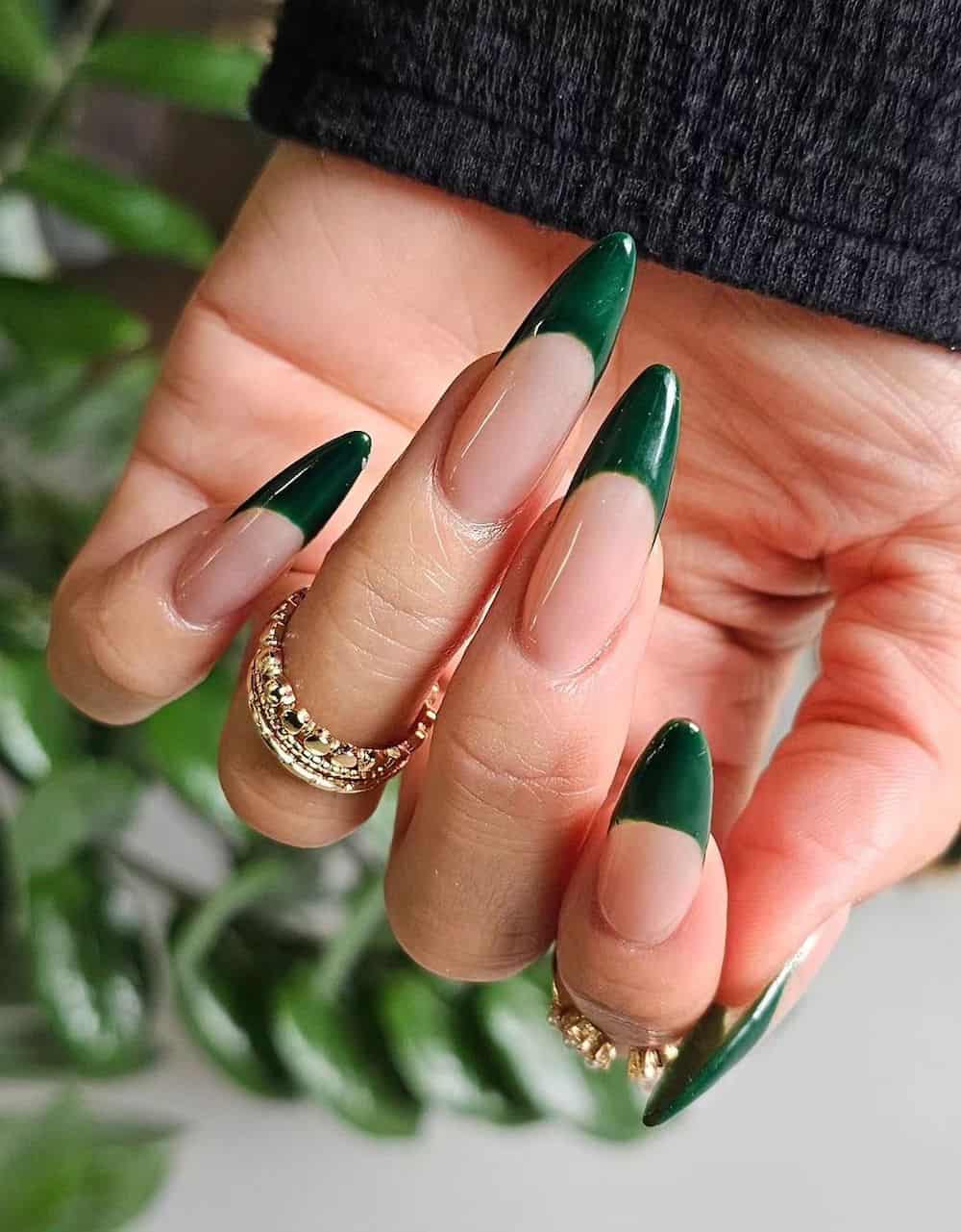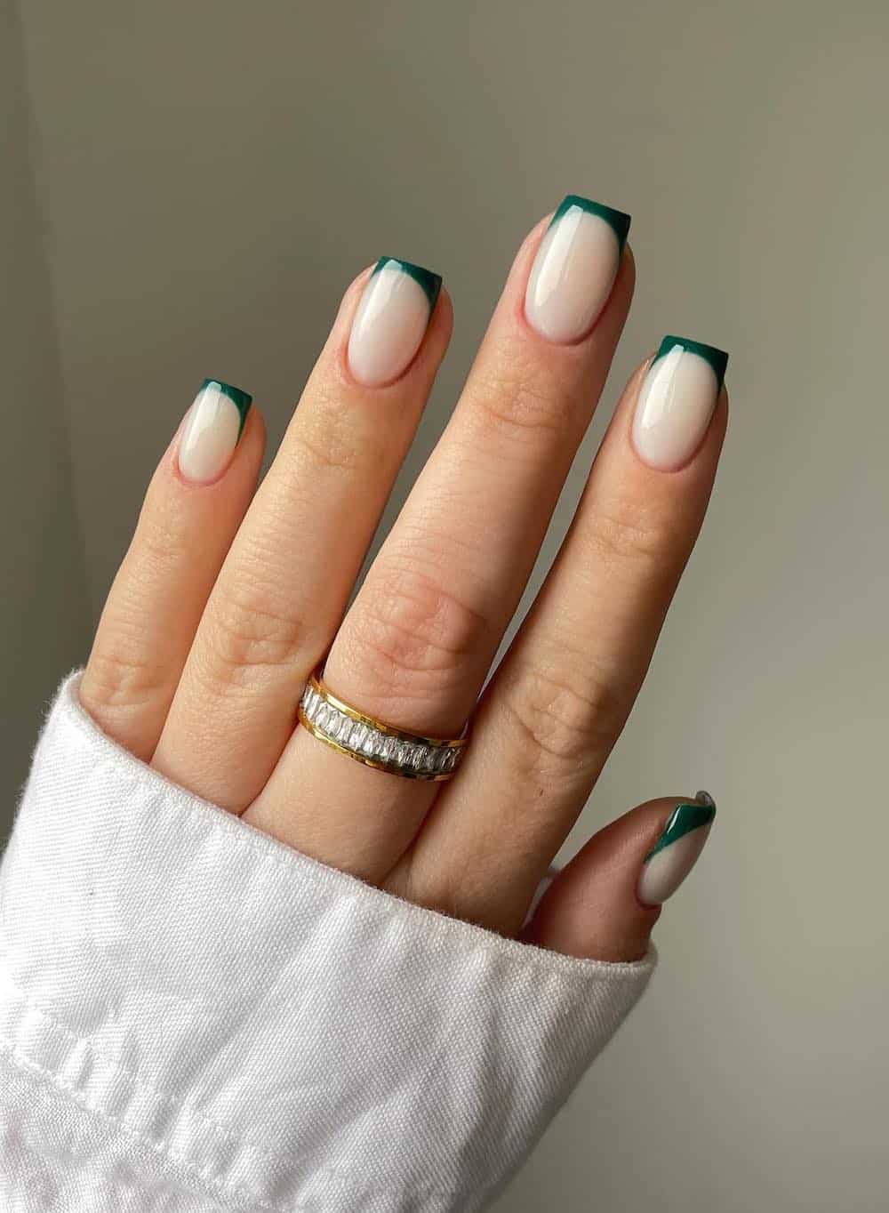 French tip nails go with any outfit, and this rich green color is sure to have holiday appeal, making it a great choice for winter occasions.