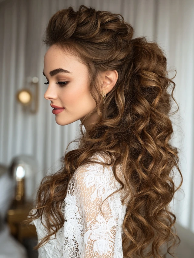 - Curly Ponytails or Puffs: High-impact, low-effort glam.