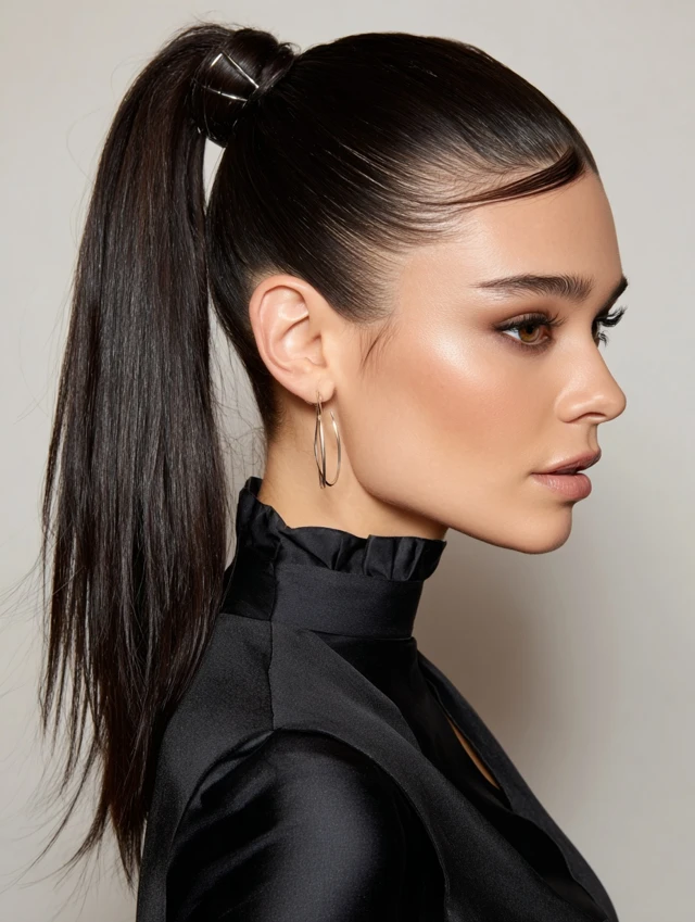 1. Sleek Edged High Ponytail