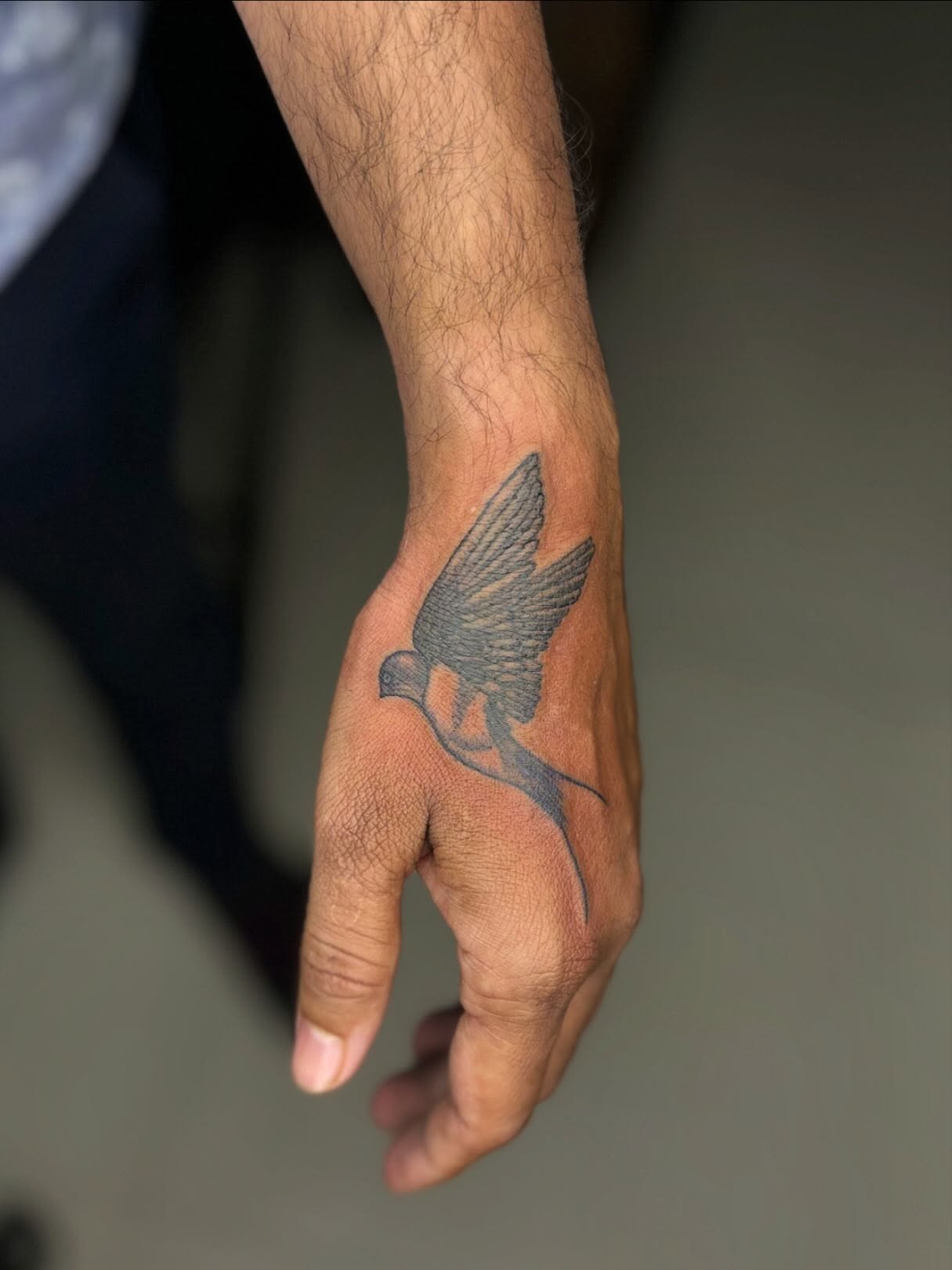 This design shows a small bird in flight, placed on the hand for maximum visibility. Its extended wings and elegant shape create a sense of upward movement and freedom.