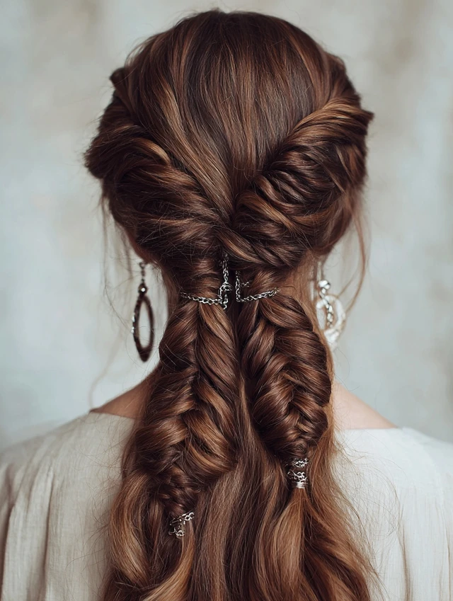 Why It Works: Adds a creative edge while keeping your long hair beautifully contained.