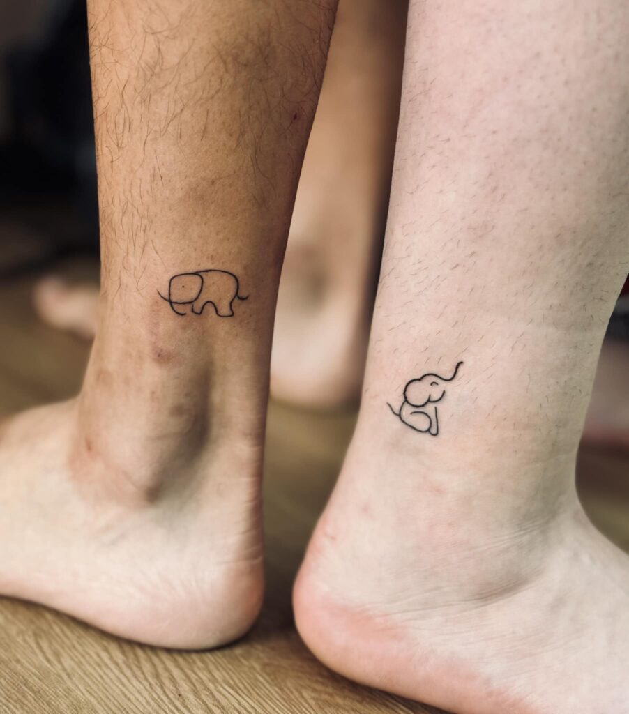 11. Minimalist Matching Elephant Tattoos