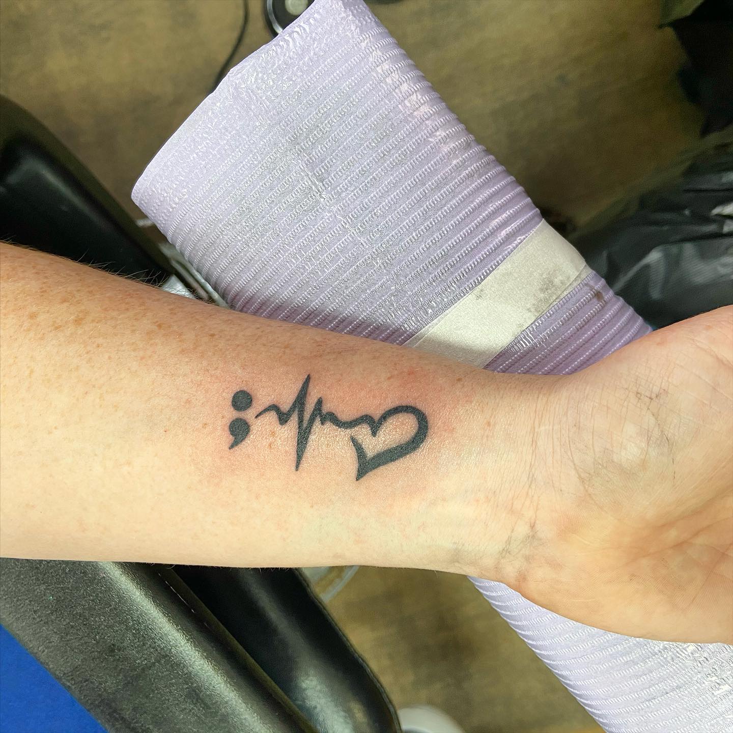 13. Semicolon Heartbeat Wrist Tattoo