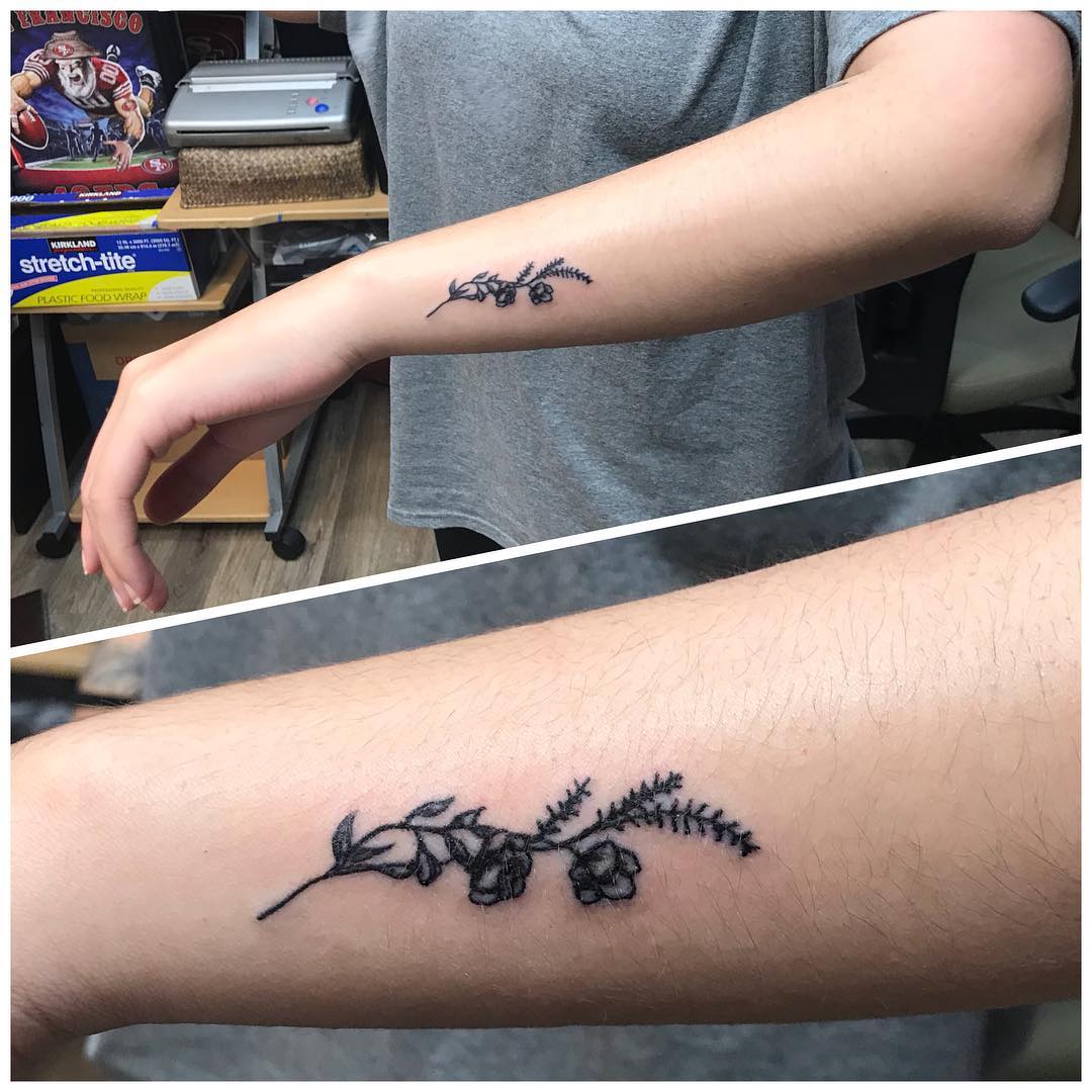 This simple yet beautiful tattoo showcases a delicate branch of flowers and leaves extending along the wrist and forearm. Nature-inspired tattoos symbolize growth, renewal, and harmony, while the branch design adds an organic flow to the skin.