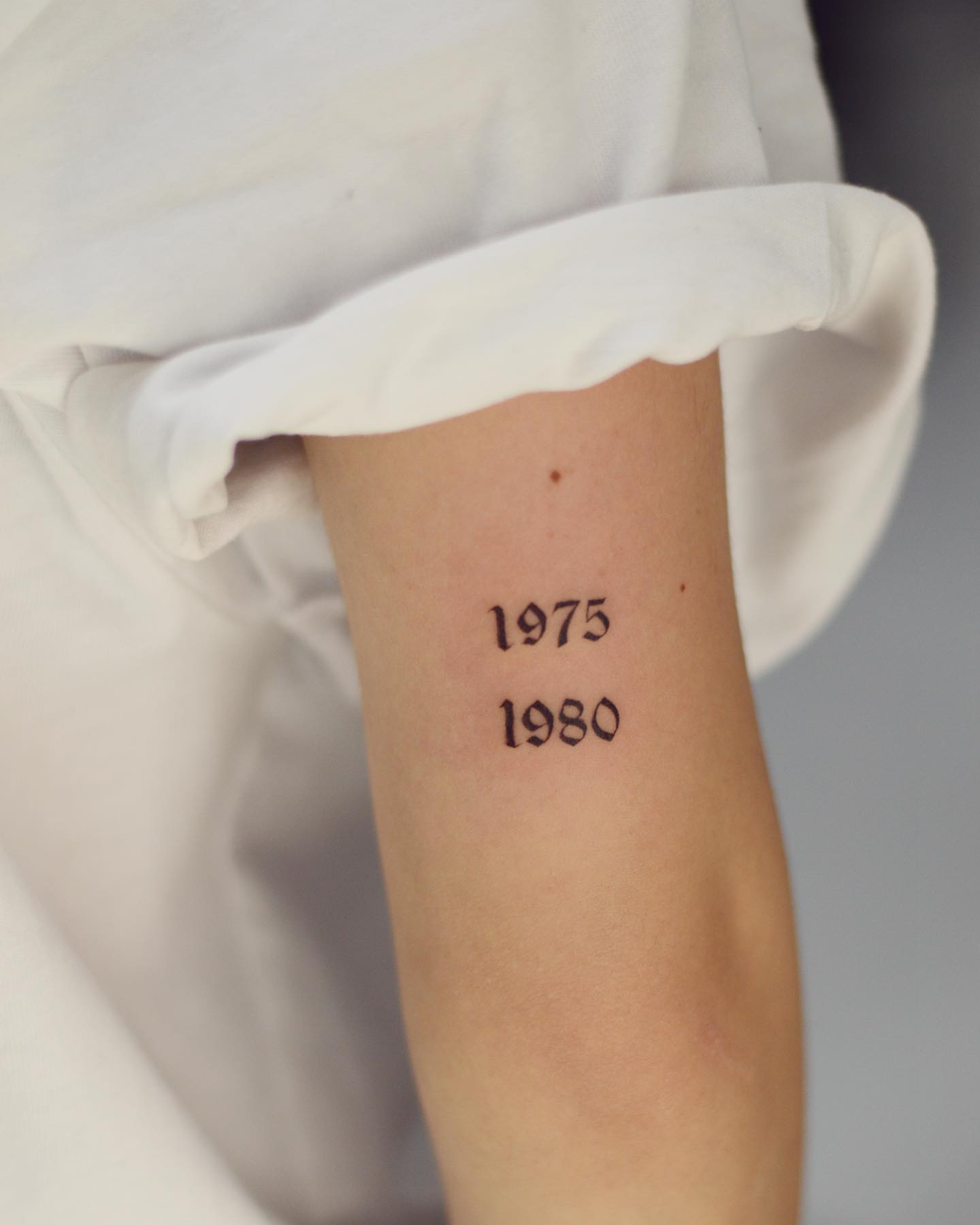 - Description: This simple yet powerful tattoo features bold, minimalist numerals, making it an elegant choice for honoring special years or dates. Whether representing birth years, anniversaries, or milestones, this design exudes sophistication. The clean font and small placement make it perfect for a subtle yet meaningful tattoo. Ideal for the upper arm or wrist, this design is a great way to carry a personal memory in a refined and timeless fashion.