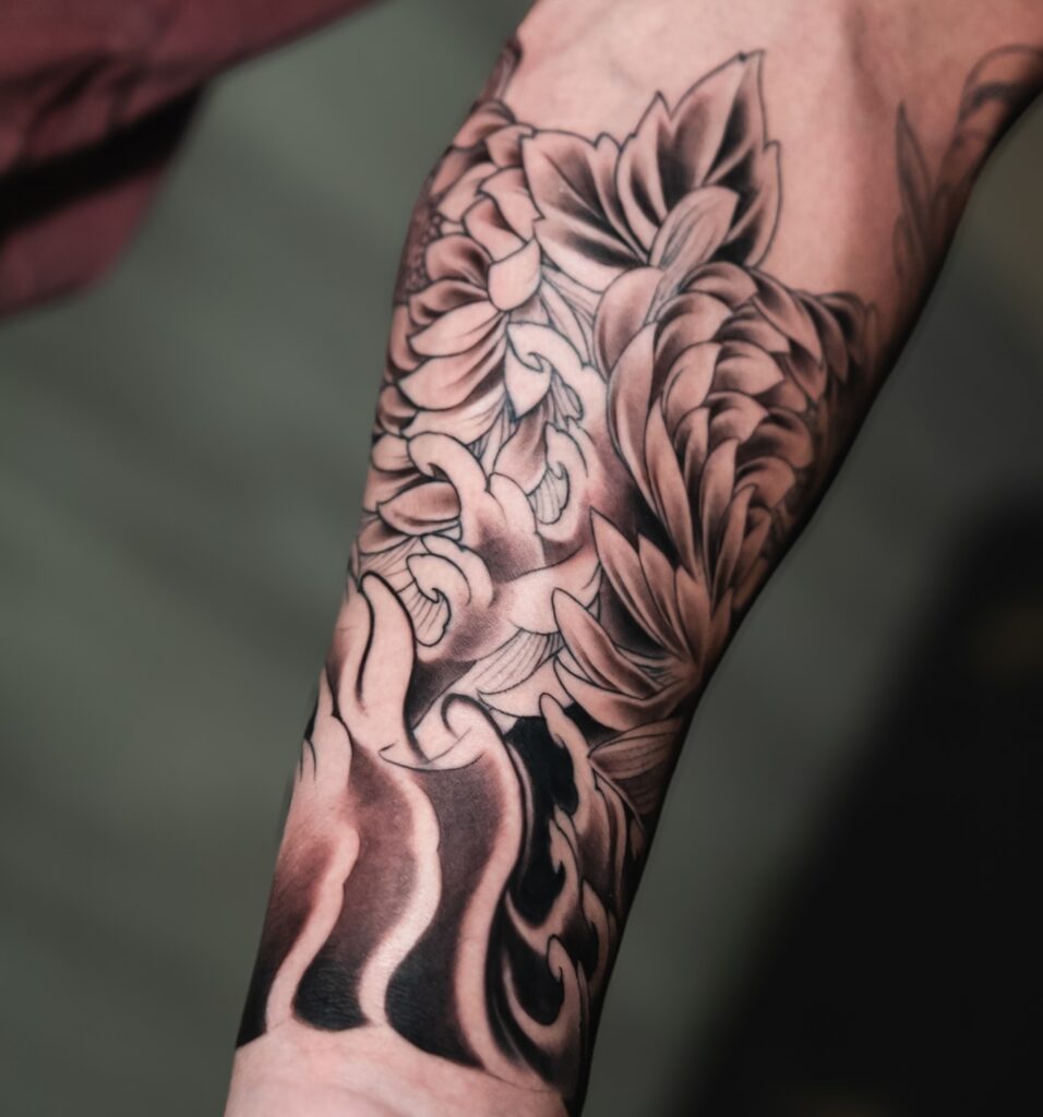 For women, this tattoo embodies strength, grace, and resilience. Its flowing composition enhances the natural lines of the arm, making it a perfect choice for those who want a design that is both protective and empowering, while radiating an aura of bold elegance.