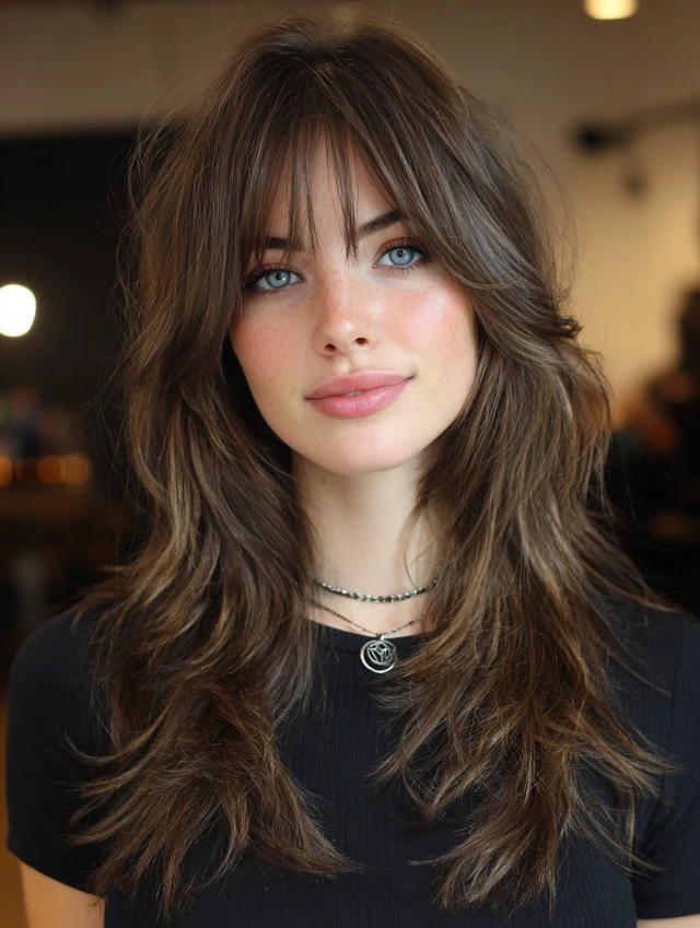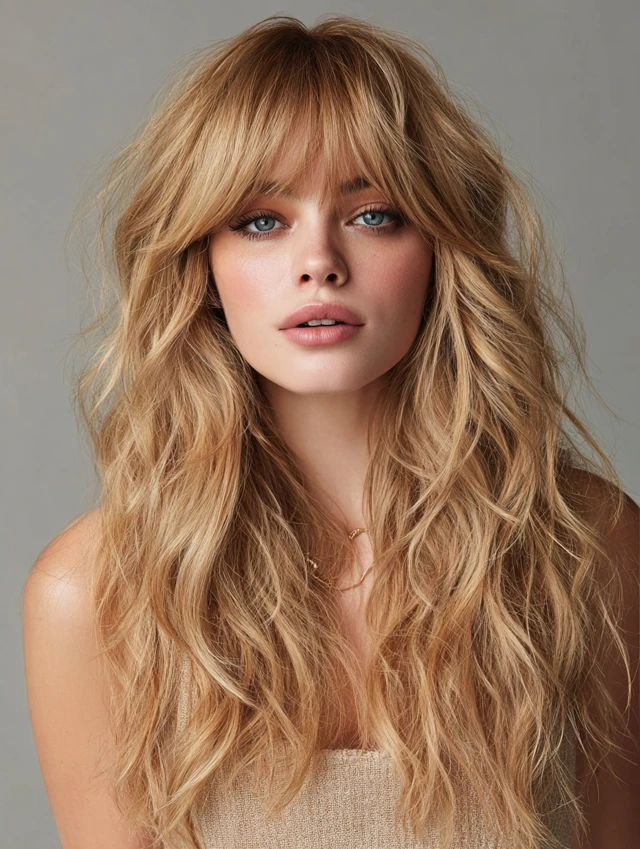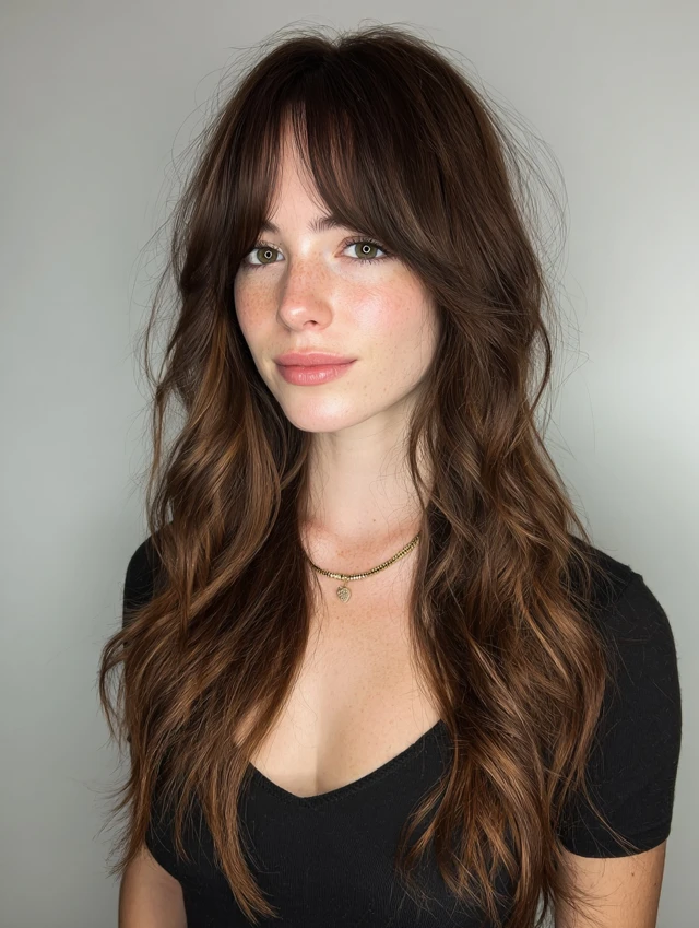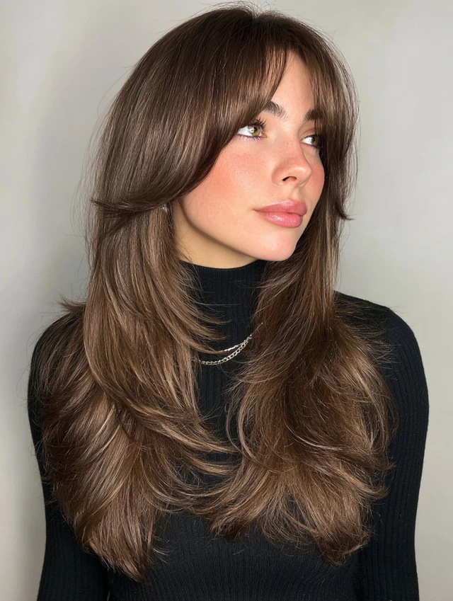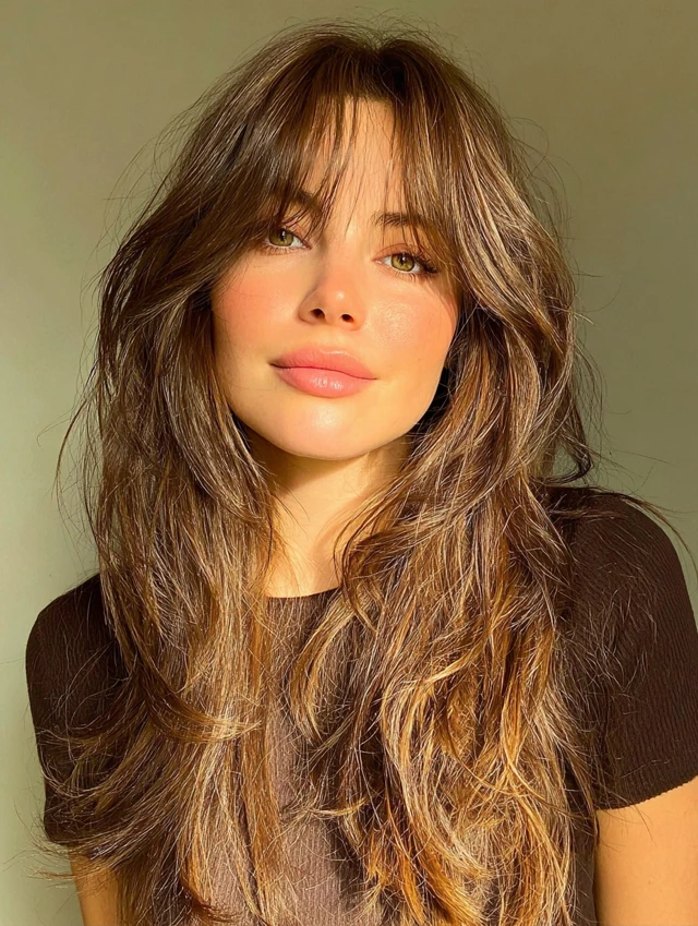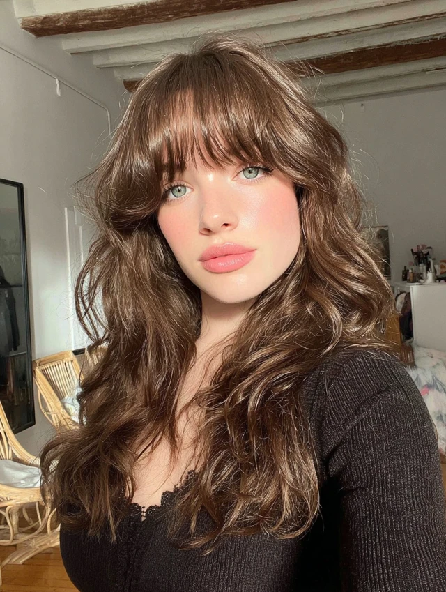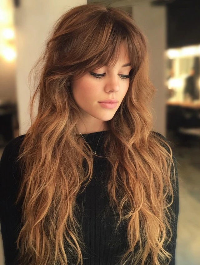 The secret to balancing long hair with curtain bangs lies in soft blending and face-framing movement.