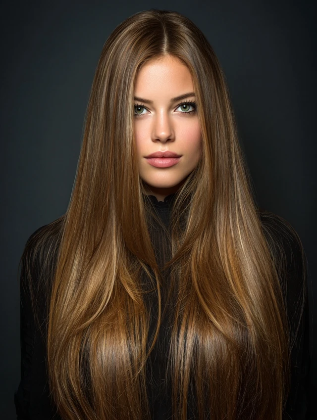 - Cut Style: Long layers with bangs that part naturally in the center.