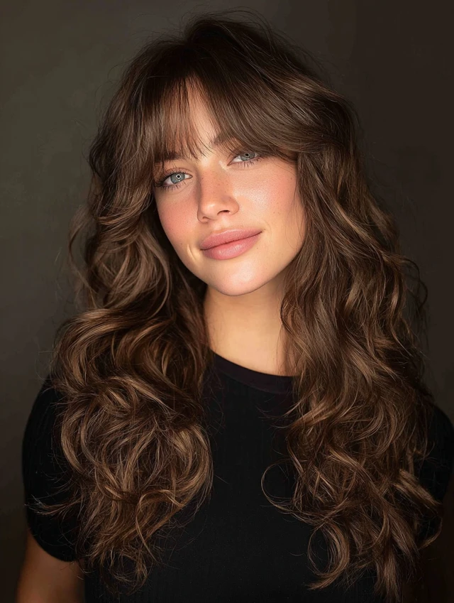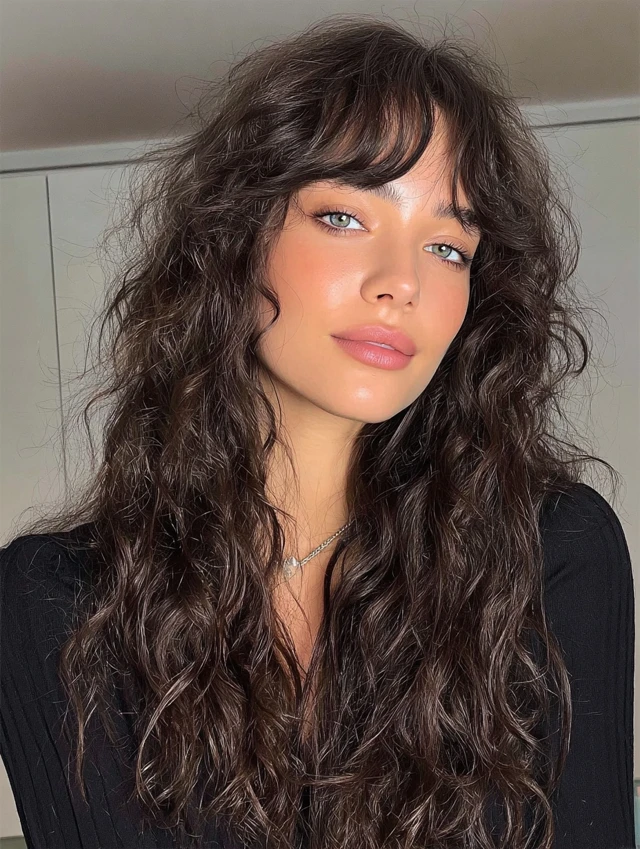 Why It Works: Bangs frame the face while curls add bounce and romance.