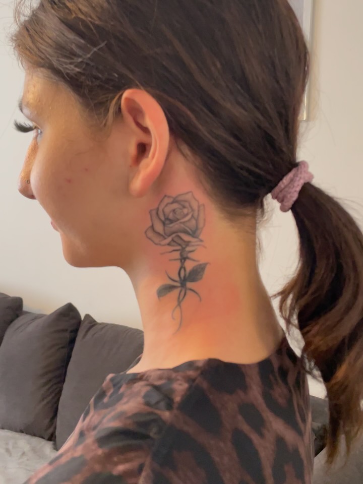 Neck tattoos are bold and symbolic, often representing courage and a fearless personality. A rose on the neck can reflect passion, strength, and the desire to wear one’s emotions openly for the world to see.