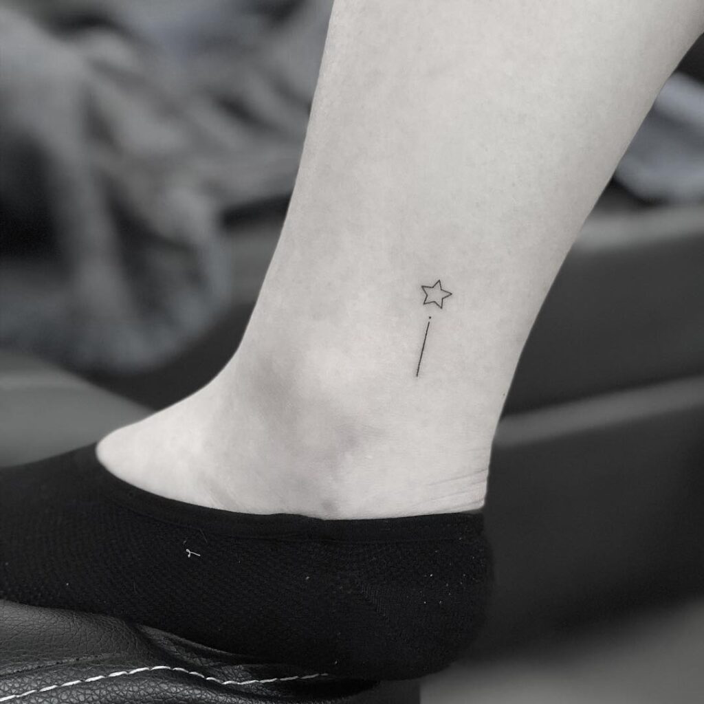 This design takes minimalism to the extreme, featuring a tiny outlined star above a single fine trail. Its simplicity makes it subtle yet meaningful, perfect for ankle or wrist placement.