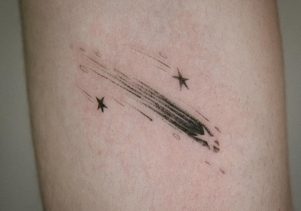 Shooting star tattoos often include fine lines, shading, or gradients, so aftercare is important. Wash gently with fragrance-free soap, pat dry, and apply a thin layer of recommended moisturizer. Avoid scratching or prolonged sun exposure while the tattoo heals. Once healed, apply sunscreen regularly to maintain crisp lines and vibrant colors.