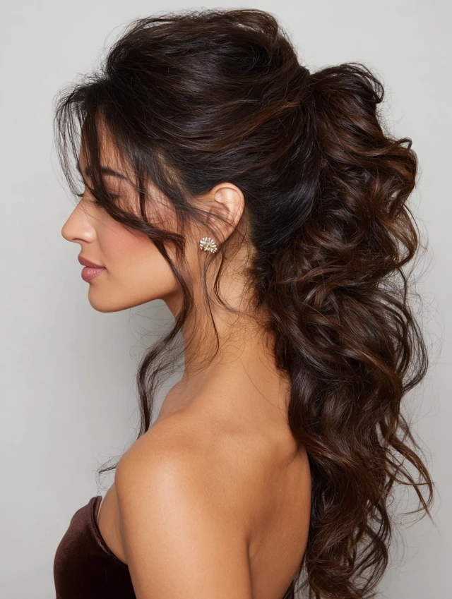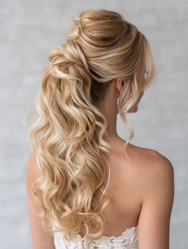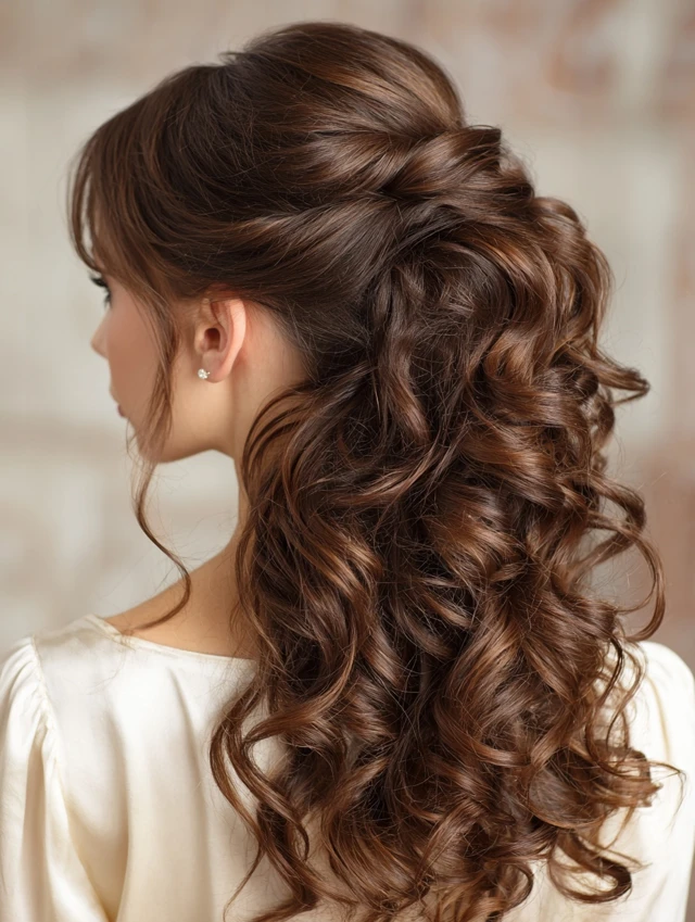 Why It Works: The curls add volume while the half ponytail keeps the style structured.