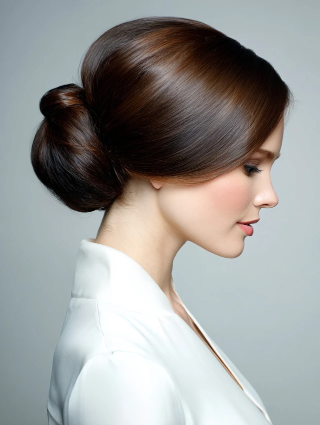 Achieving the perfect slick bun requires precision and a touch of shine. Here’s your go-to formula: