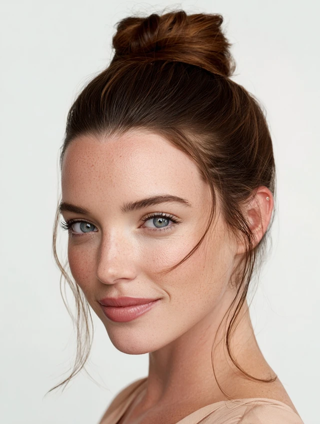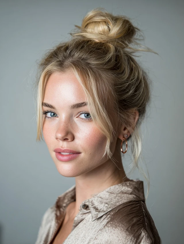 This look is as much about energy as it is about styling. It radiates calm, poise, and control. Stand tall, move gracefully, and let the simplicity of the bun amplify your natural confidence.