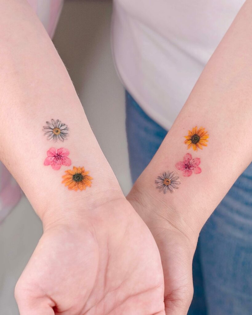 5. Minimalist Sunflower Wrist Tattoo with Date