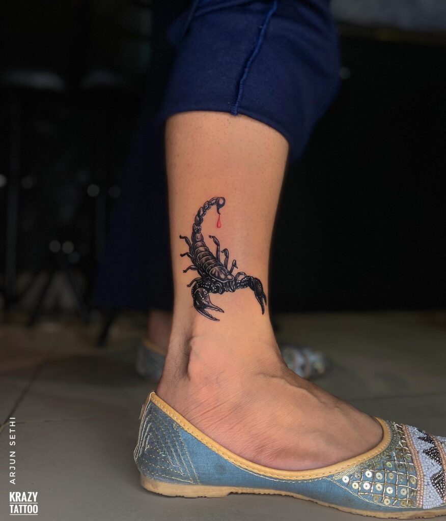 1. Fierce Scorpion Ankle Tattoo with Blood Drop